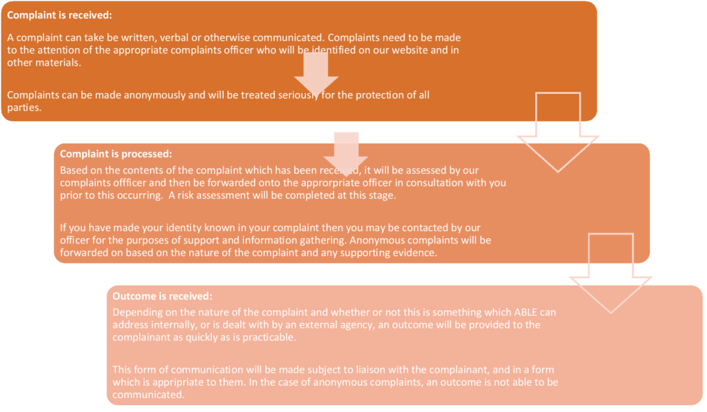 - Participants will be encouraged to advise support workers, or AHS directly in the event that they would like to make a complaint and will be provided assistance to make the complaint in a way which fully expresses their concerns